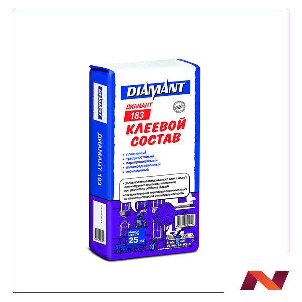 Показать оптовые ценыПолимерминеральный клеевой и армирующий состав (универсальный) Diamant 183 применяется: